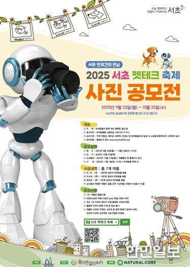 한민일보 서울포커스 곽중희 기자 | 서울 서초구는 ‘2025 서초 펫테크 축제’(11월 1일)를 앞두고, 반려동물과 함께하는 사진 공모전을 오는 22일부터 접수한다고 밝혔다.