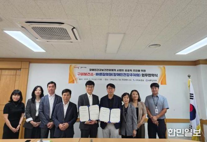 한민일보 서울포커스 김봉순 기자 | 구미보건소는 지난 19일 구미보건소 건강세미나실에서 바른길의원(장애인건강주치의)과 장애인 건강증진을 위한 ‘장애인 건강보건전달체계사업’ 업무협약(MOU)을 체결했다.