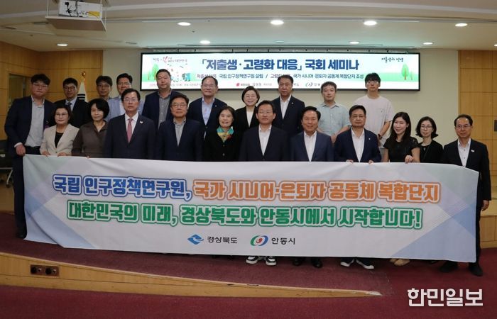 한민일보 서울포커스 김봉순 기자 | 경상북도와 안동시는 김형동 국회의원실과 함께 9월 19일 국회의원회관 제2소회의실에서 '국립 인구정책 연구원 설립'과 '국가 시니어․은퇴자 복합단지 조성'을 주제로 저출생․고령화 대응 국회 세미나를 개최했다.
