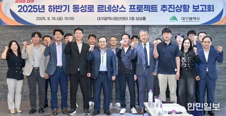 한민일보 서울포커스 김봉순 기자 | 대구광역시는 지난 9월 19일 오전 10시, 대구시청년센터 2층 상상홀에서 홍성주 대구시 경제부시장 주재로 ‘2025년 하반기 동성로 르네상스 프로젝트 추진상황 보고회’를 개최했다.