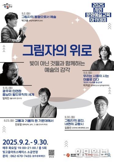 올해 아카데미는 ‘그림자의 위로–빛이 아닌 것들과 함께하는 예술의 감각’을 주제로, 매주 화요일 총 5회에 걸쳐 진행된다. 광주문화재단과 (사)인문도시연구원 시민자유대학이 협력해 추진하며, 강연과 공연이 결합된 강연형 콘서트로 시민들의 큰 관심을 모으고 있다.