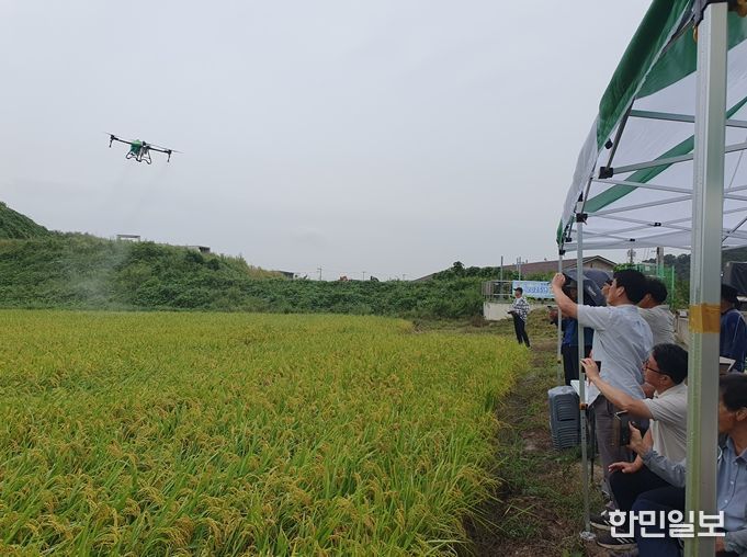 한민일보 서울포커스 유창렬 기자 | 인천광역시 농업기술센터는 지난 19일 중구 운북동에서 벼 재배 농업인 20여 명이 참여한 가운데 병해충 약제 비산 저감 효과가 높은 ‘비산저감형 AI(Air Induction, 공기흡입형) 노즐 드론 방제기’를 선보이는 시연회를 개최했다고 밝혔다.