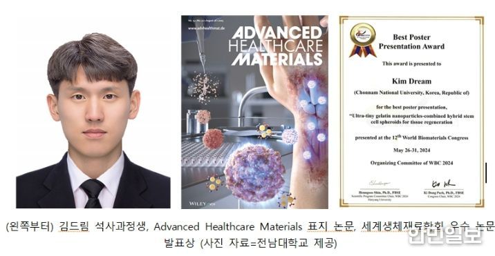 한민일보 서울포커스 박정민 기자 | 전남대학교 김장호 교수팀의 김드림, 이신율 석사과정생이 저명 국제학술지 ‘Advanced Healthcare Materials’와 ‘Nano Letters’ 저널에서 각각 표지 논문으로 선정되는 쾌거를 이뤘다.