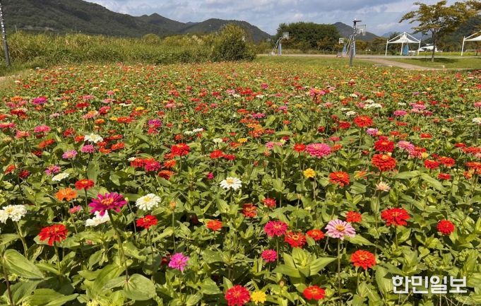 한민일보 서울포커스 김은금 기자 | 황산공원의 여름 끝자락이 백일홍의 매력적인 자태로 빛난다. 황산공원 중부광장에서 낙동강 쪽으로 산책하다보면 농구장 맞은편 3,500m2 면적에 백일홍꽃들이 화려하게 만개했다.