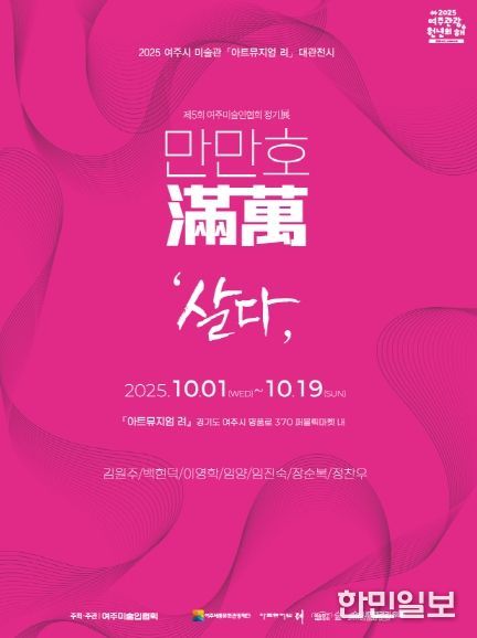 한민일보 서울포커스 전희주 기자 | 여주세종문화관광재단은 오는 10월 1일부터 19일까지 아트뮤지엄 려에서 제5회 여주미술인협회 회원전《만만滿萬호‘살다’》를 개최한다고 밝혔다.