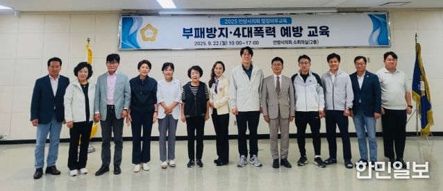한민일보 서울포커스 김성윤 기자 | 안양시의회는 지난 22일 시의회 소회의실에서 시의원과 사무국 직원을 대상으로 ‘부패방지 및 4대폭력 예방 교육’을 진행했다. 이번 교육은 법정의무교육으로, 청렴 의식 함양과 4대폭력(성희롱, 성폭력, 성매매, 가정폭력)에 대한 예방 의식 고취를 위해 마련됐다.