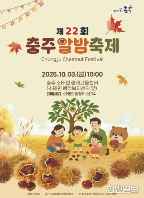 한민일보 서울포커스 김다남 기자 | 전국 최고의 품질을 자랑하는 충주 알밤을 주제로 한 제22회 충주 알밤축제가 오는 10월 3일 오전 10시, 충주시 소태면 생태고을센터(소태면행정복지센터 앞) 일원에서 열린다.
