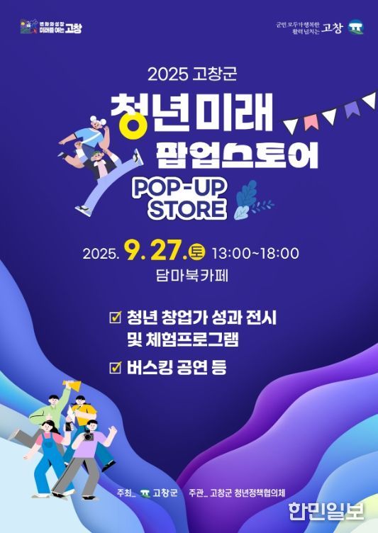 한민일보 서울포커스 박용남 기자 | 고창군은 오는 9월27일 오후 1시부터 담마북카페에서 2025 청년의 날 기념행사 ‘청년미래 팝업스토어’를 연다.