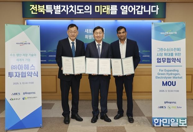 한민일보 서울포커스 임철현 기자 | 전북특별자치도는 완주 테크노밸리 2산단 소재 수소전문기업 ㈜아헤스(대표 이중희)가 인도 신재생에너지업체 GH2 Solar Ltd.와 수출 협력을 본격 추진한다고 23일 밝혔다.