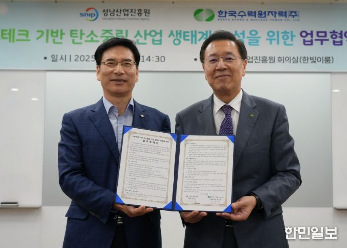 한민일보 서울포커스 임철현 기자 | 성남산업진흥원과 한국수력원자력이 기후위기 대응 이라는 국가적 과제 속에서 탄소중립 사회 실현을 위한 기후테크 산업 생태계 조성에 협력하기로 했다.