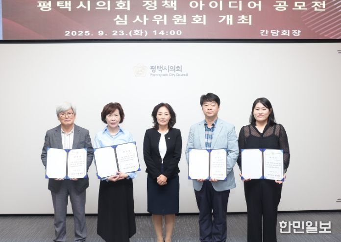 한민일보 서울포커스 황준형 기자 | 평택시의회는 23일 ‘2025년 평택시의회 정책 아이디어 공모전’ 심사위원회를 개최해 우수상 1건, 장려상 1건을 선정했다.
