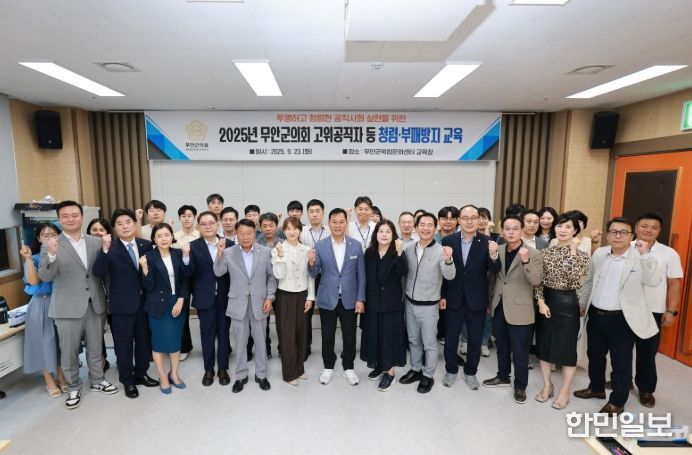한민일보 서울포커스 박용남 기자 | 무안군의회는 9월 23일 무안군복합문화센터 교육장에서 군의원과 의회사무과 공직자를 대상으로 청렴·부패방지 교육, 사회적 장애인식개선 교육, 4대 폭력 예방 교육을 실시했다.