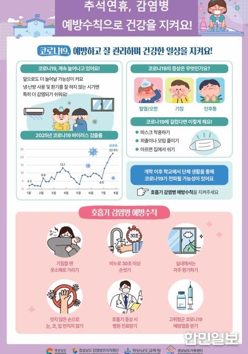 한민일보 서울포커스 김서윤 기자 | 통영시는 오는 10월 3일부터 9일까지 이어지는 2025년 추석 연휴 동안 전국적인 귀성․여행 등 인구 이동이 크게 늘어날 것으로 보고, 다양한 감염병 확산에 대비해 시민들에게 철저한 예방수칙 준수를 당부했다.
