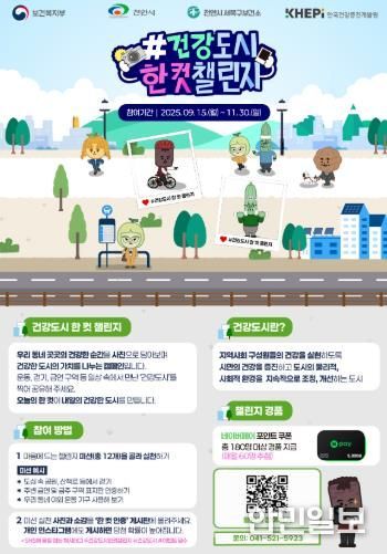 한민일보 서울포커스 황준형 기자 | 천안시는 오는 11월 30일까지 보건복지부와 한국건강증진개발원이 주관하는 건강도시 캠페인 ‘건강도시 한 컷 챌린지’에 참여한다고 24일 밝혔다.