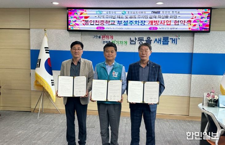한민일보 서울포커스 유창렬 기자 | 인천동부교육지원청은 23일 남동구청, 동인천중학교와 학교부설주차장 개방 협약을 체결했다고 밝혔다.