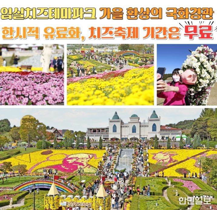 한민일보 서울포커스 박용남 기자 | 가을 국화꽃 경관의 전국적인 명성을 자랑하는 임실치즈테마파크가 올가을 처음으로 한시적 유료 입장을 시행하는 가운데 임실N치즈축제 기간에는 무료 개방한다.