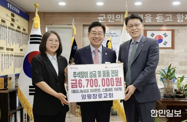 한민일보 서울포커스 차재만 기자 | 양평군은 지난 23일 양평장로교회가 추석 명절을 맞아 어려운 이웃을 돕기 위해 320만 원 상당의 스팸세트 100개와 해피 나눔 성금 350만 원을 기탁했다고 밝혔다.