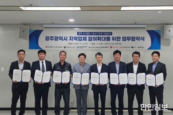 한민일보 서울포커스 임철현 기자 | 광주광역시는 24일 도시철도건설본부 대회의실에서 도시철도 2호선 2단계 건설공사의 원활한 추진과 지역 건설경기 활성화를 위한 업무협약을 체결했다.
