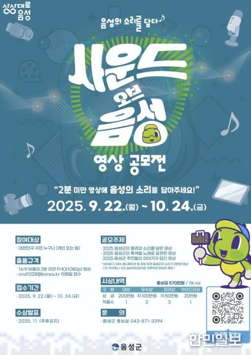 한민일보 서울포커스 김다남 기자 | 음성군은 오는 10월 24일까지 2025 사운드 오브 음성 영상 공모전을 개최한다고 밝혔다.