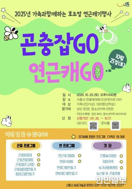 한민일보 서울포커스 유현민 기자 | 시흥시는 오는 10월 25일 오후 1시 40분부터 5시까지 연꽃테마파크에서 가족 단위 참여자를 위한 특별 체험행사 ‘곤충 잡고(GO), 연근 캐고(GO)’를 진행한다. 이번 행사는 지역 농가와 협력해 다양한 체험 프로그램을 동시에 제공한다.