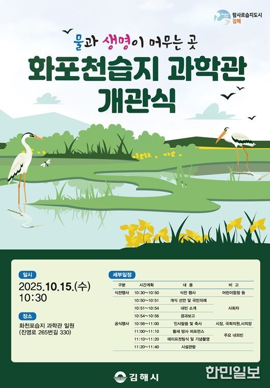한민일보 서울포커스 김은금 기자 | 김해시는 다음 달 15일 화포천습지 과학관 개관식을 개최한다고 25일 밝혔다.