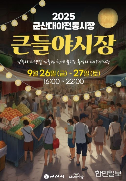 한민일보 서울포커스 김용택 기자 | 군산시가 오는 26일부터 27일 이틀간 대야전통시장 주차장에서 ‘큰들야시장’을 개최한다.