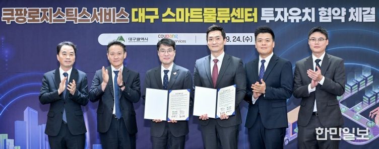 한민일보 서울포커스 임철현 기자 | 대구광역시는 9월 24일 오후 4시 30분, 시청 동인청사 2층 상황실에서 국내 택배부문 1위 기업인 ‘쿠팡로지스틱스서비스(유)’(대표 홍용준, 이하 ‘쿠팡로지스틱스서비스’)와 수성알파시티 내 첨단 스마트물류센터 구축을 위한 투자유치 협약을 체결했다.