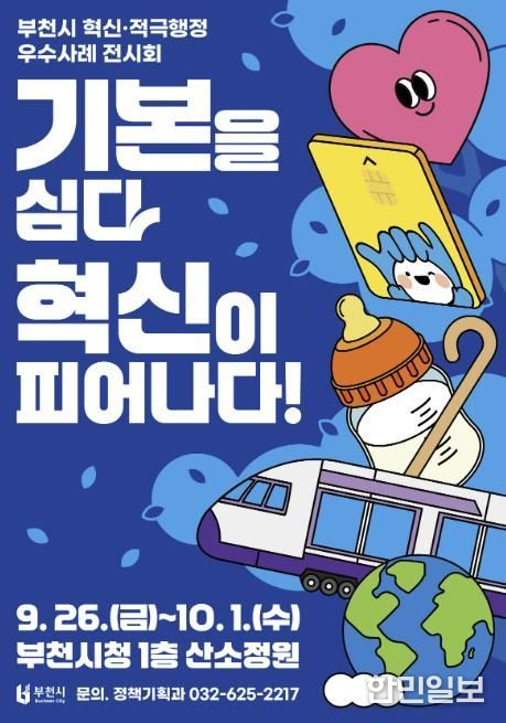 한민일보 서울포커스 김윤이 기자 | 부천시는 9월 26일부터 10월 1일까지 6일간 부천시청 1층 산소정원에서 ‘혁신‧적극행정 우수사례 전시회’를 연다. 이번 전시회는 ‘기본을 심다, 혁신이 피어나다!’를 주제로, 부천시가 시민의 행복과 소통을 중심으로 실천하는 혁신행정을 소개하기 위해 마련됐다.