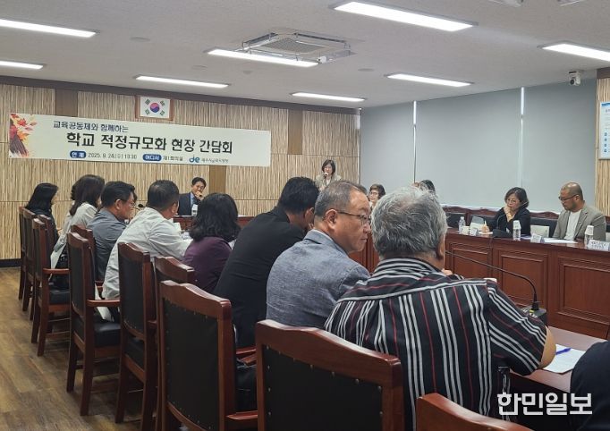 한민일보 서울포커스 임철현 기자 | 제주시교육지원청은 24일 한림읍과 구좌읍 내 9개 학교의 학교장과 학교운영위원장, 도교육청 및 교육지원청 관계자 등 30명이 함께 ‘교육공동체와 함께하는 학교 적정규모화 현장 간담회’를 개최했다.