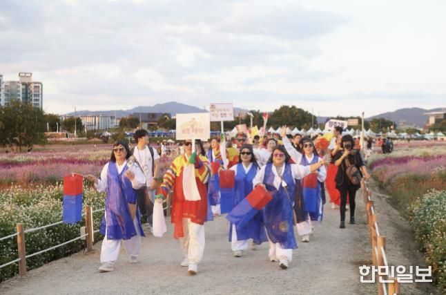축제의 첫 장은 시민이 직접 만드는 플라워 퍼레이드로, 12개 읍·면·동 주민과 전문 퍼레이드 공연팀 등 400여 명이 참여해 고읍 시가지에서 나리농원 전망대까지 약 2km 거리를 행진한다.