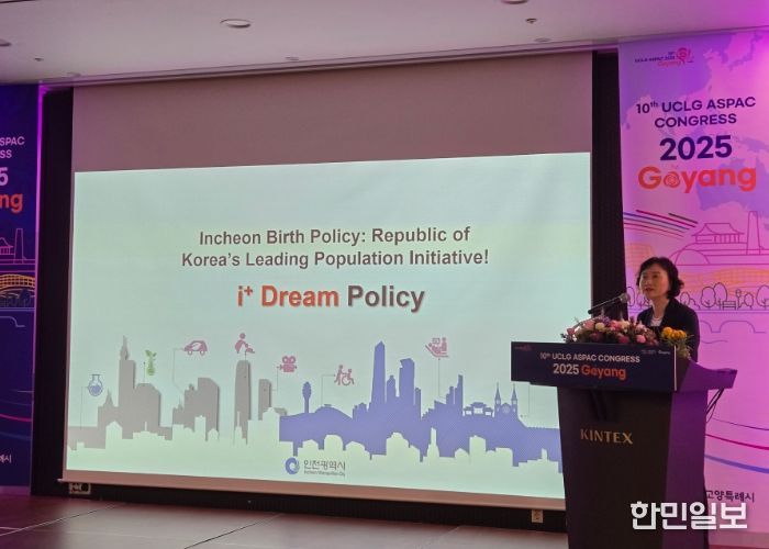 한민일보 서울포커스 유창렬 기자 | 인천광역시는 2025년 9월 24일부터 26일까지 고양 킨텍스 제1전시장에서 열리는 '2025년 제10차 세계지방정부연합 아시아‧태평양지부(UCLG ASPAC) 고양총회'에 참가해, ‘가족친화도시: 출산율 증가 및 가족지원에 적합한 도시환경 조성’을 주제로 한 서브포럼에서 인천형 출생정책의 성과를 세계 지방정부와 공유했다고 밝혔다.