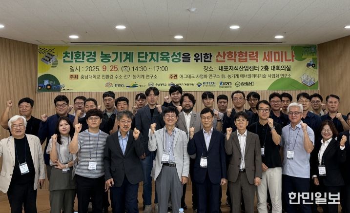 도와 예산군은 25일 한국과학기술원(KAIST)모빌리티연구소 대회의실에서 충남대, 애그테크 사업화 연구소와 공동으로 ‘친환경 농기계 단지 육성을 위한 산학 협력 세미나’를 개최했다.