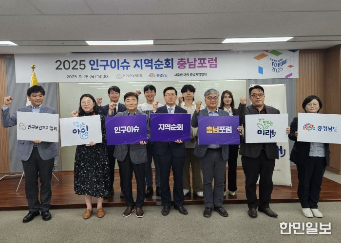 한민일보 서울포커스 박덕환 기자 | 충남도와 인구보건복지협회는 25일 도의회 회의실에서 ‘2025 인구이슈 지역순회 충남포럼’을 개최했다.