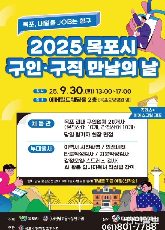 한민일보 서울포커스 임광현 기자 | 목포시는 오는 9월 30일(화) 오후 1시, 에메랄드웨딩홀 2층에서 ‘2025 목포시 구인·구직 만남의 날’ 행사를 개최한다고 밝혔다.