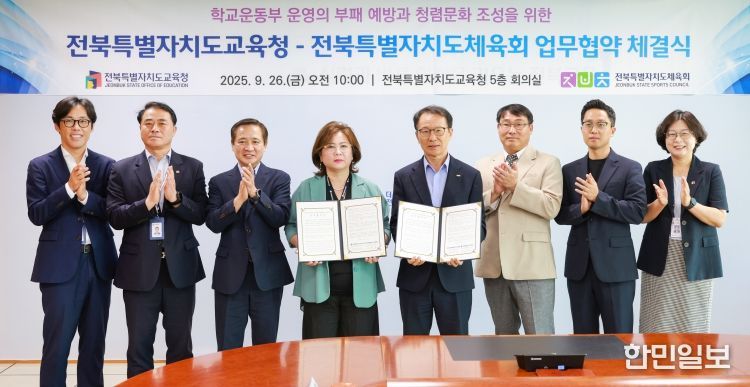 한민일보 서울포커스 임철현 기자 | 전북특별자치도교육청과 전북특별자치도체육회가 공정하고 투명한 학교 운동부 환경 조성을 위해 손을 맞잡았다.