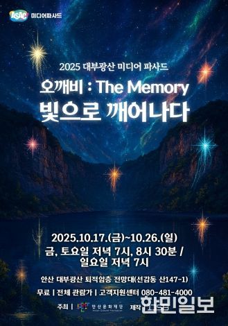 한민일보 서울포커스 임철현 기자 | 안산문화재단이 오는 10월 17일부터 26일까지 매주 금·토·일 총 6일간 안산 대부광산 퇴적암층 전망대에서 특별한 야외 공연 ‘오깨비 : The Memory, 빛으로 깨어나다’를 선보인다. 이번 공연은 매주 금요일·토요일 오후 7시와 8시 30분, 일요일 오후 7시에 진행되며, 모든 프로그램은 무료로 관람할 수 있다.