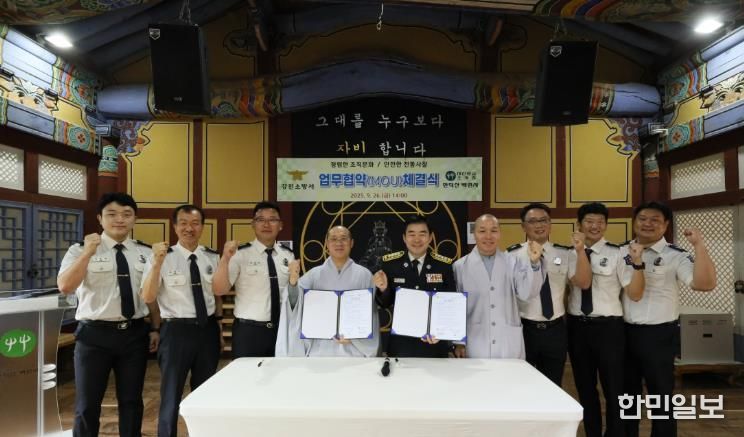 주요 협약 내용은 ▲공직자의 봉사정신·청렴 의식 제고를 위한 법문 및 체험 프로그램 ▲다도 체험을 통한 소방공무원의 심신 안정 지원 ▲국가문화재 및 전통사찰 화재 예방을 위한 안전컨설팅 지원 ▲사찰 관계자 대상 소방안전교육·소방훈련 협력 등이다.