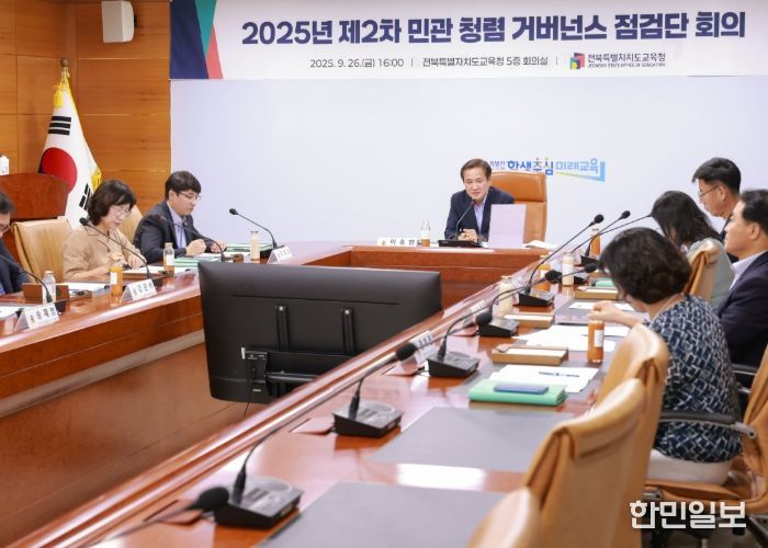 한민일보 서울포커스 임철현 기자 | 전북특별자치도교육청은 26일 본청 5층 회의실에서 부패 취약 분야 개선을 위한 ‘제2차 민관 청렴 거버넌스 점검단 회의’를 개최했다.