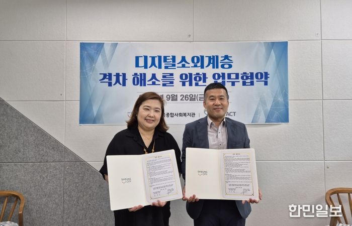 한민일보 서울포커스 유현민 기자 | 시흥시장곡종합사회복지관은 지난 9월 26일 ㈜스마택트와 디지털 소외계층의 디지털 격차 해소를 위한 업무협약을 체결했다.