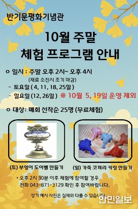 한민일보 서울포커스 김다남 기자 | 음성군 제8대 유엔사무총장 반기문 평화기념관에서는 관람객을 위해 10월 주말 무료 체험 프로그램을 운영한다.