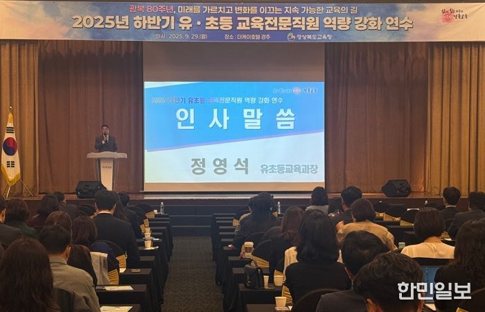 한민일보 서울포커스 임철현 기자 | 경북교육청은 29일 경주시에 있는 더케이호텔경주에서 본청과 직속기관․교육지원청 소속 유․초등 교육전문직원 160여 명이 참석한 가운데 ‘2025 하반기 유․초등 교육전문직원 역량 강화 연수’를 개최했다고 밝혔다.