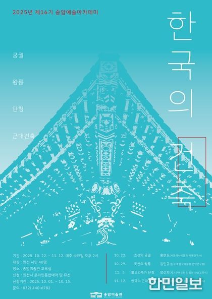 첫 회차인 10월 22일 ‘조선의 궁궐’을 시작으로 10월 29일 ‘조선의 왕릉’, 11월 5일 ‘불교 건축과 단청’, 11월 12일 ‘한국(인천)의 근대건축’ 순으로 진행한다.