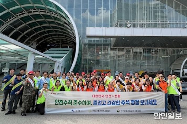 한민일보 서울포커스 김봉순 기자 | 구미시는 한가위를 맞아 9월 29일 구미역 일원에서 ‘제334차 안전점검의 날’ 캠페인을 펼쳤다. 이날 행사에는 재난안전네트워크 회원 100여 명이 참여해 귀성객과 시민들에게 생활 속 안전수칙을 알렸다.