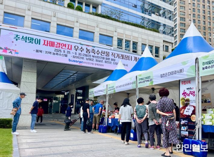 한민일보 서울포커스 임광현 기자 | 부산진구청이 주최하는 ‘추석맞이 농축수산물 직거래장터’가 9월 29일부터 9월 30일까지 부산진구 정문광장에서 열리고 있다.