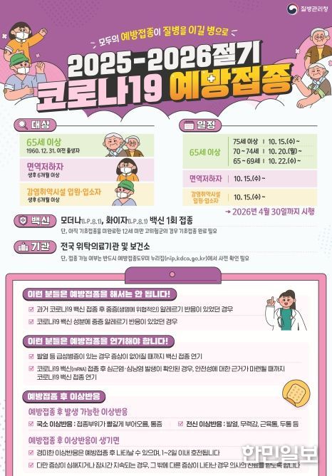 한민일보 서울포커스 김다남 기자 | 충북 영동군은 2025∼2026절기 코로나19 예방접종을 오는 15일부터 실시한다고 밝혔다.