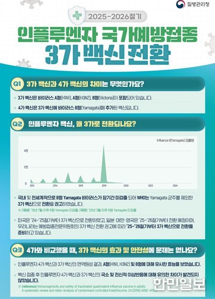 이번 인플루엔자 백신은 세계보건기구(WHO)의 권고사항과 예방접종전문위원회 심의에 따라 기존 4가 백신에서 3가 백신으로 전환*된다.