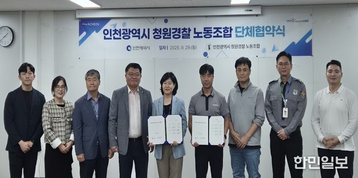 한민일보 서울포커스 유창렬 기자 | 인천광역시는 지난 9월 29일 시청 소통회의실에서 인천광역시 청원경찰 노동조합과 역사적인 첫 단체협약을 체결했다고 밝혔다.