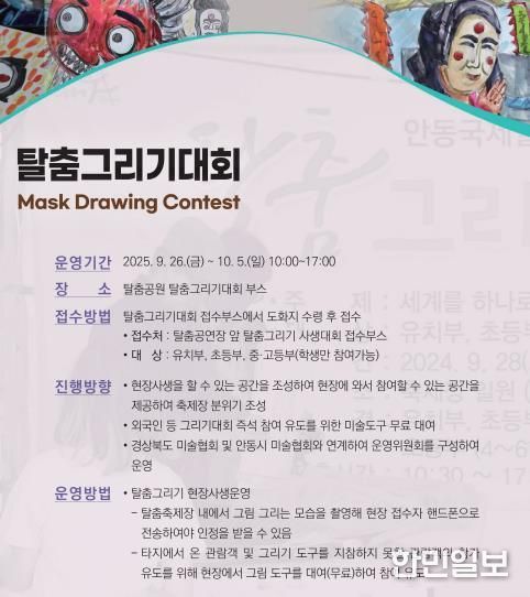 한민일보 서울포커스 김봉순 기자 | 2025 안동국제탈춤페스티벌에서는 축제 기간 동안 세계탈춤그리기대회가 운영된다.