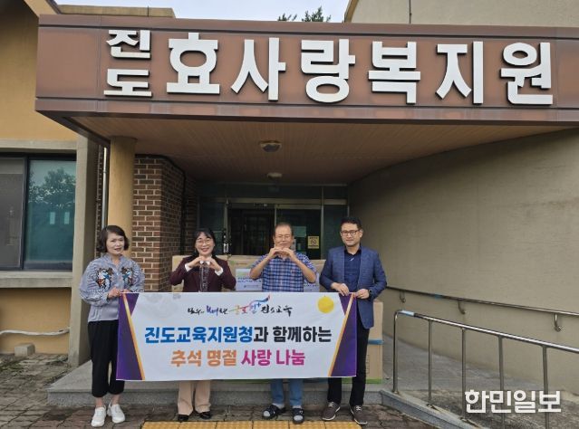 한민일보 서울포커스 임철현 기자 | 진도교육지원청은 9월 29일 다가오는 추석 명절을 맞아 지역 내 사회복지시설 2곳(효사랑복지원, 카리타스노인복지센터)을 방문해 정성을 담아 준비한 위문품을 전달하며 따뜻한 이웃사랑을 실천했다.