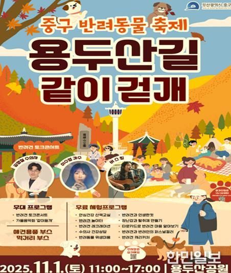 한민일보 서울포커스 임광현 기자 | 부산 중구는 오는 11월 1일 용두산공원 일원에서 첫 반려동물 축제, ‘용두산길 같이걷개’를 개최한다.